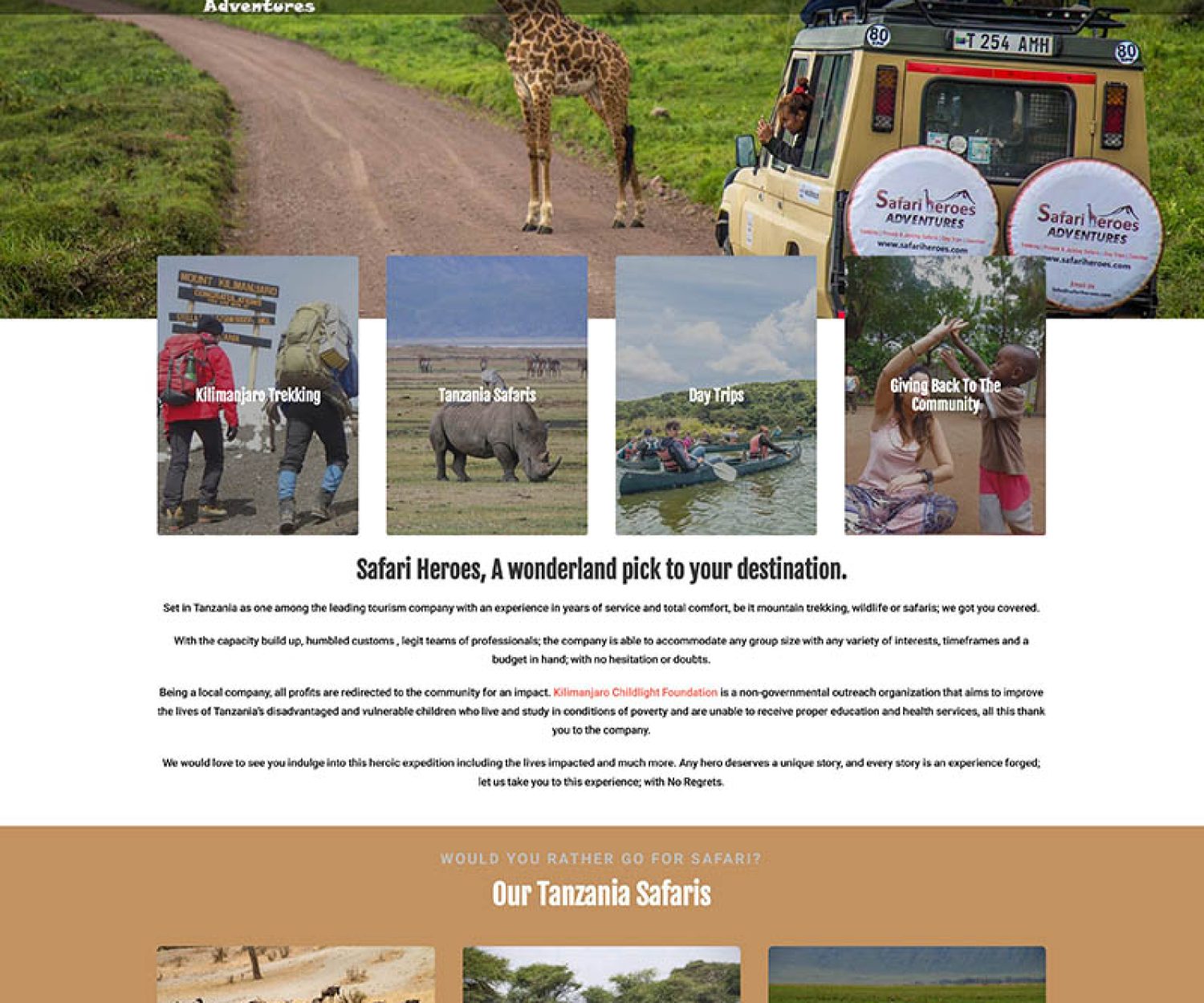 23 Jul 2017 Kilimanjaro Adventures Heroes We are a small local company located in Tanzania organizing complex Kilimanjaro Trips & different Safaris within East Africa. We… Zel